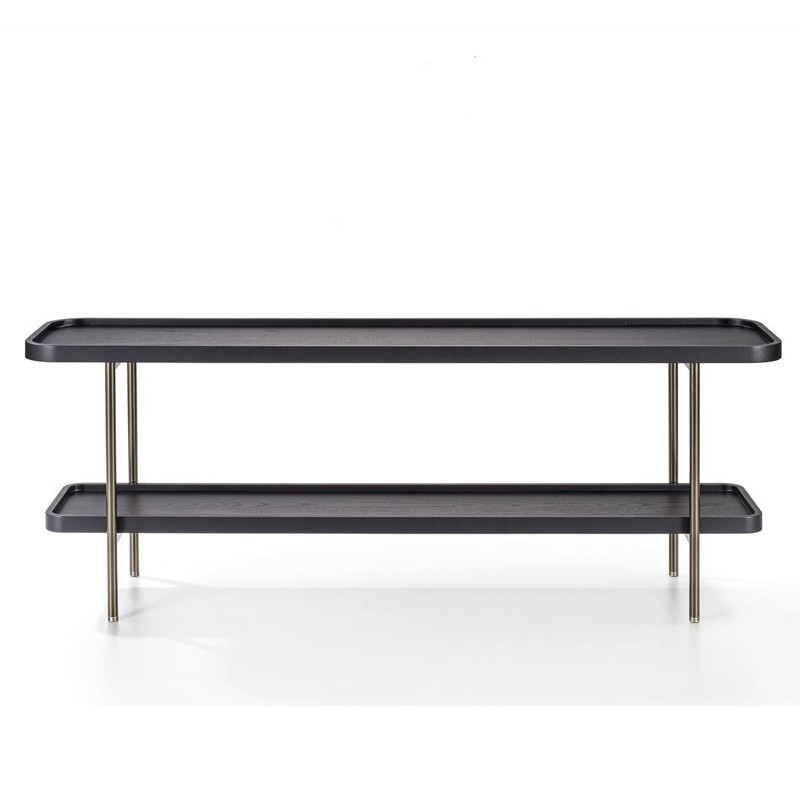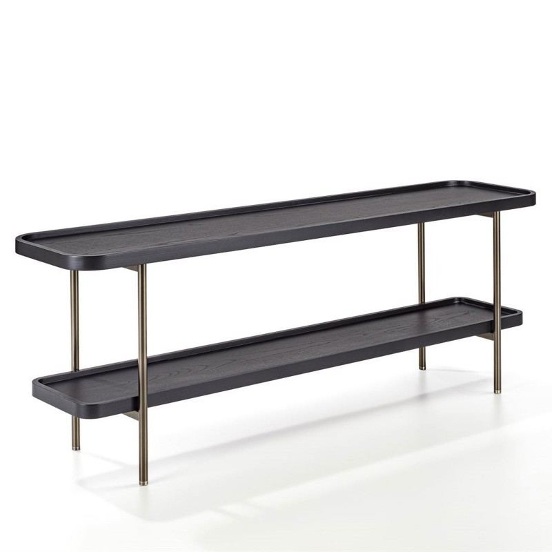The Koster console by Porada is an elegant piece of furniture perfect for decorating an entrance or hallway. The design is essential but embellished by ash tops supported by a metal structure with a Bronzoro finish and feet in brushed bronzed brass.