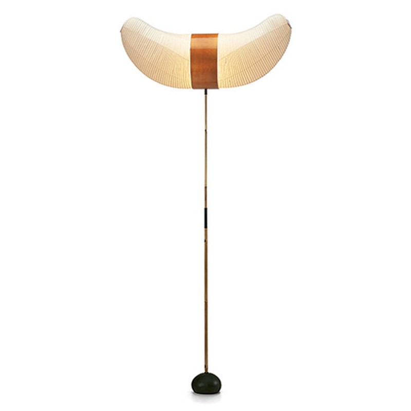 Lampada in carta di riso con struttura in bambu e filo d'acciaio e supporti in filo d'acciaio verniciato.