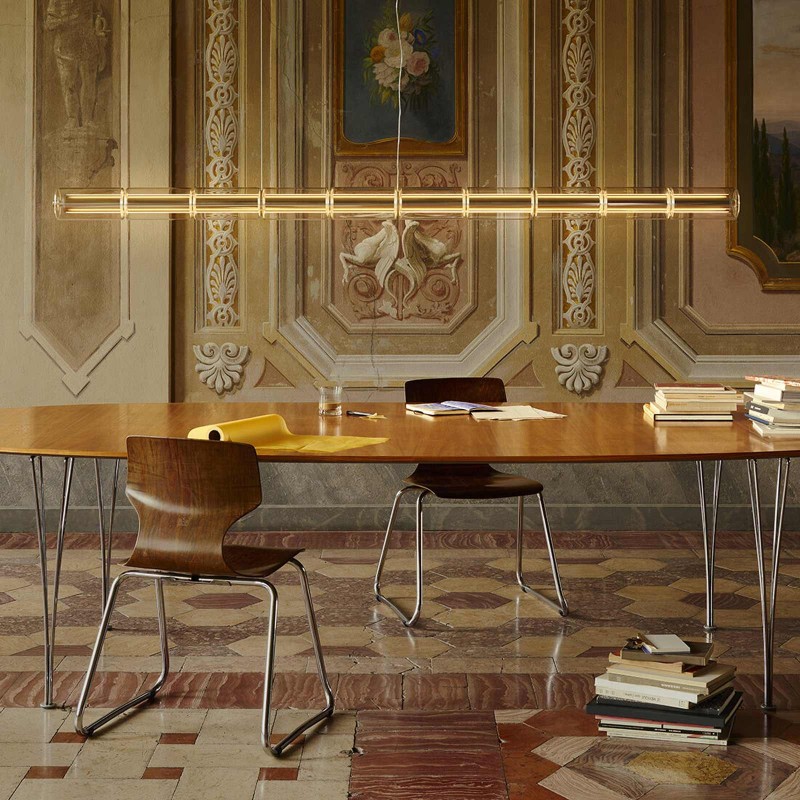 Flos’s Luce Cilindrica, designed by Ronan Bouroullec, is a lamp that pays homage to the simplicity of small things: the wonder of the ordinary becoming extraordinary, like a soap bubble blown by a child or raindrops suspended on a thread. This is precisely the inspiration behind the Luce Sferica pendant lamp, interpreted on an industrial base of extruded aluminum, along which cylindrical borosilicate glass modules slide to offer maximum transparency. A poetic presence, where magic meets technical precision.