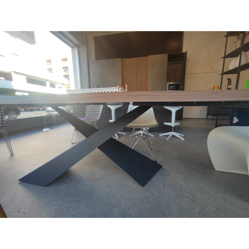 The Living table by Riflessi is characterized by a metal base with a crisscross motif. In this version at outlet price for expo renewal, the Living table is proposed in the following configuration: