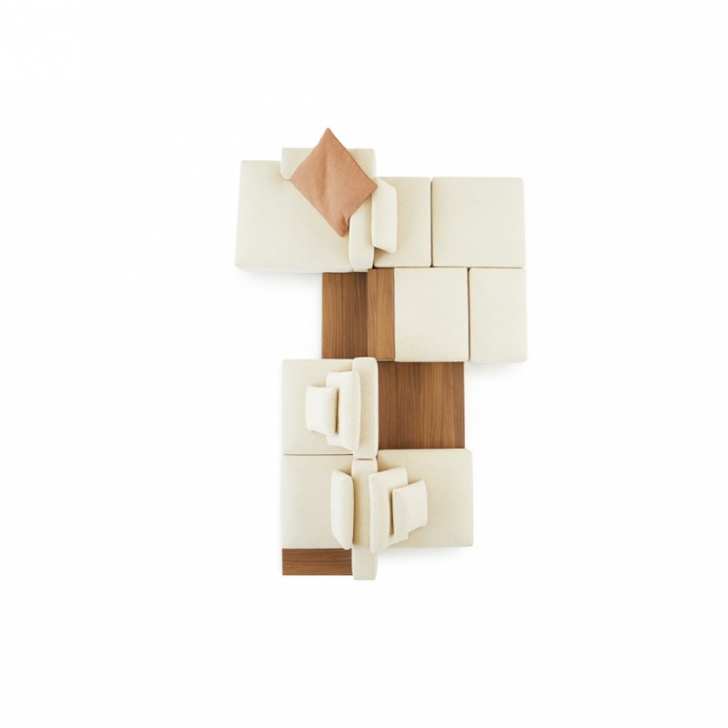 Marteen is much more than the whole of its parts; it is modularity that meets dynamism. Composed of padded seating modules, this new range can be proposed in infinite arrangements - from single seats such as poufs, to the classic 2-seater or islands with 360 ° seats that become the centerpiece of the living area. " Vincent Van Duysen