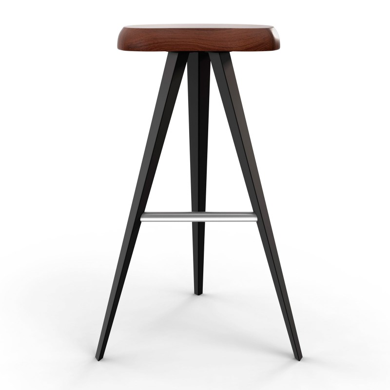 The Mexique stool is part of the homonymous collection designed by Charlotte Perriand and has been re-edited by Cassina. The solid wood seat has vaguely organic shapes in contrast with the geometric structure of the legs in matt anthracite-painted metal. Mexique is also included in the brand's Pro collection, dedicated to the contract world.