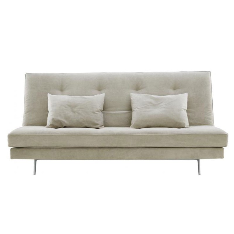 Nomade-Express by Ligne Roset is a sofa bed where elegance balances well with practicality and everyday use. Raised with molded aluminum feet, Nomade-Express has a vaguely retro twist in the look of the cushions, buttoned in a mattress style.