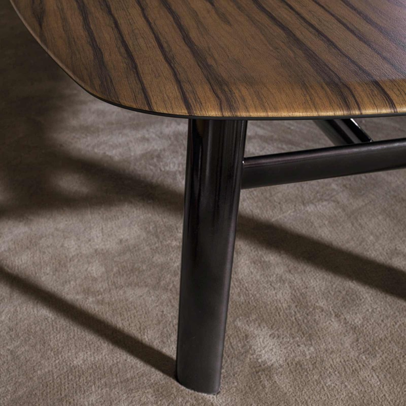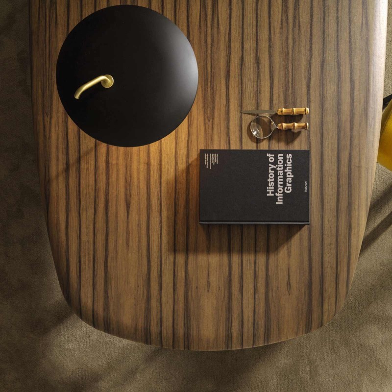 Old Ford is the new Molteni&C table designed by Rodolfo Dordoni. Old Ford has a top with rounded edges that curve harmoniously downwards to join the four glossy lacquered legs (available in burgundy red, pine green or black nickel), joined by an H-shaped structure. The top is available in Emperador, Calacatta or Sahara Noir marble with matt or glossy polyester finish. To embellish the top there is an underlying anthracite-colored frame.
