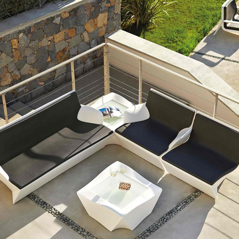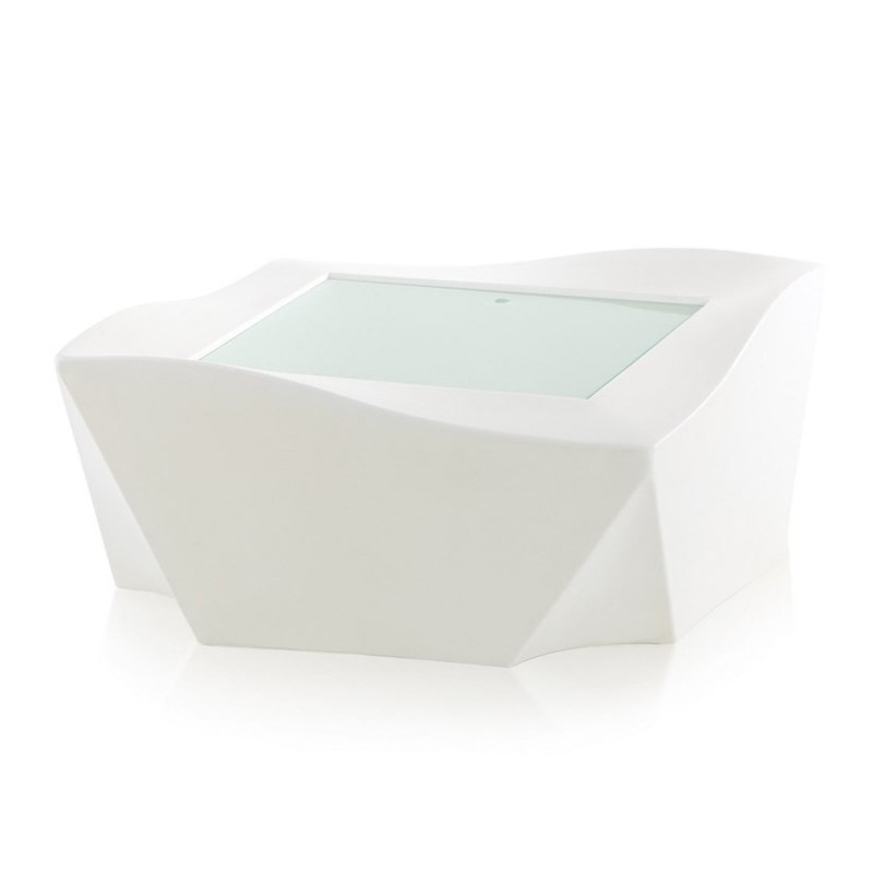 Like the whole outdoor Kami collection, this low table is inspired by the Japanese origamis. Kami NI is made of polyethylene with the included tempered glass top, as well as the LED. Enjoy completing your outdoor combining the table with the armchair or the sofa of the same collection!