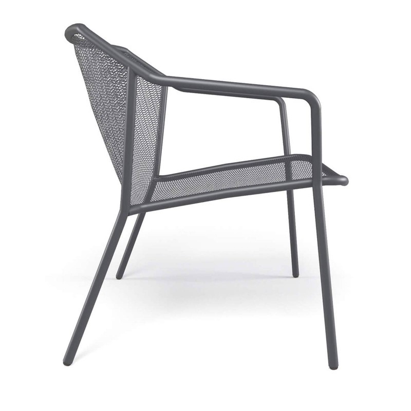 With clean lines and impeccable proportions, the Darwin armchair by Emu is designed to stylishly furnish outdoor spaces, from residential to commercial settings. The powder-coated steel frame ensures strength and durability, while the hot-dip galvanized expanded metal used for the seat and backrest lends a sense of visual lightness and a sophisticated aesthetic.
