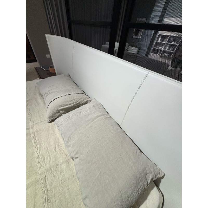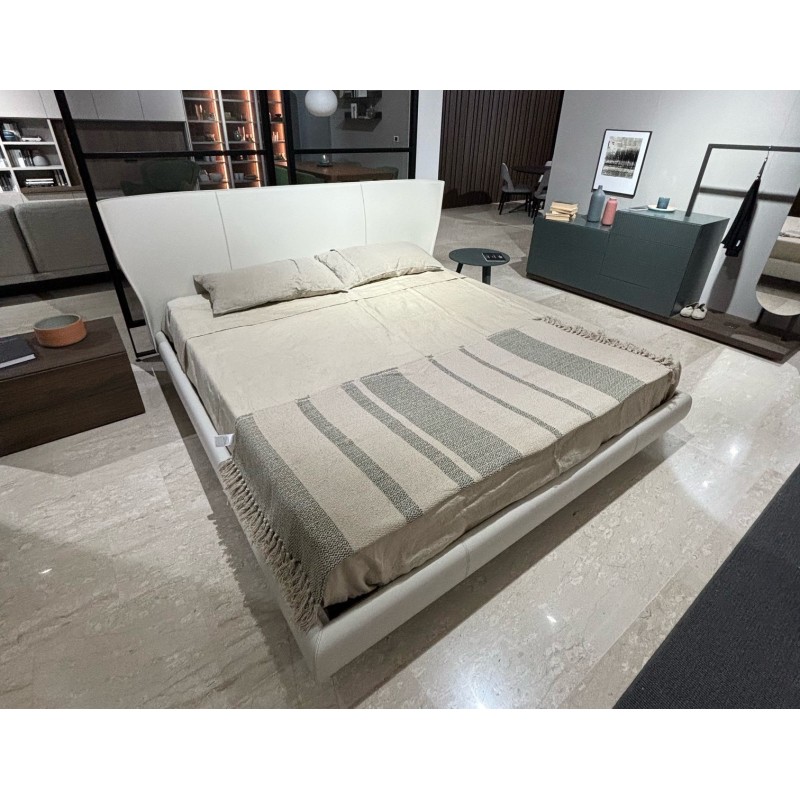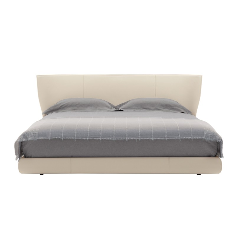 The Alys bed by B&B Italia was presented 10 years ago and today it celebrates its anniversary with a new version that features a larger base, softer shapes and a new milky white leather covering, available at outlet prices for expo renewal.