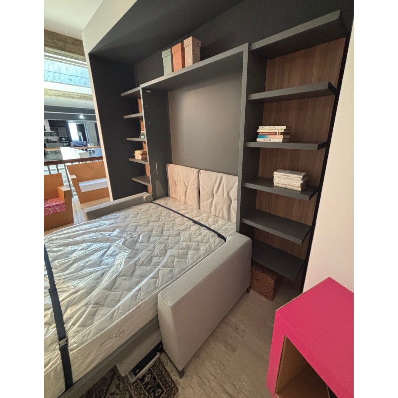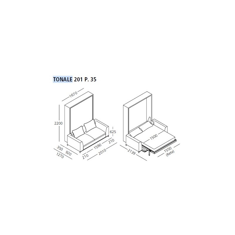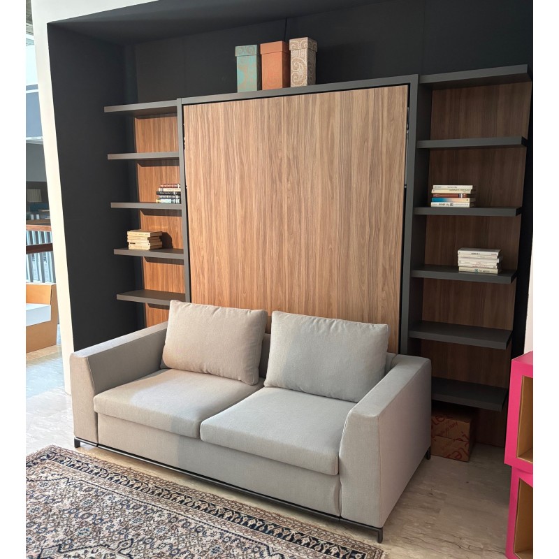 Clei's Tonale transformable system includes a sofa that becomes a comfortable fold-down bed when needed. A space-saving solution ideal for small living rooms where an additional sleeping space needs to be added.