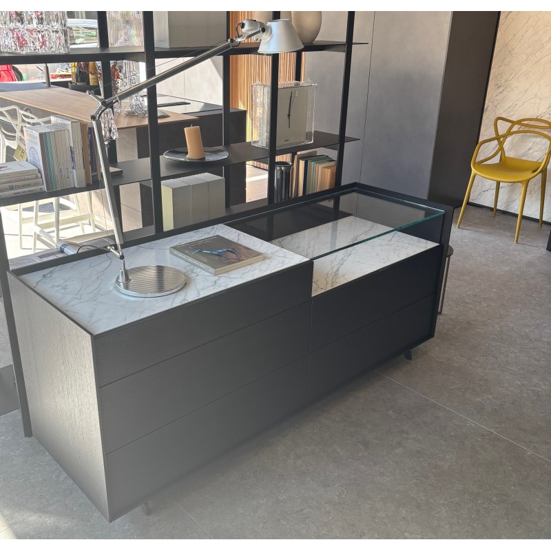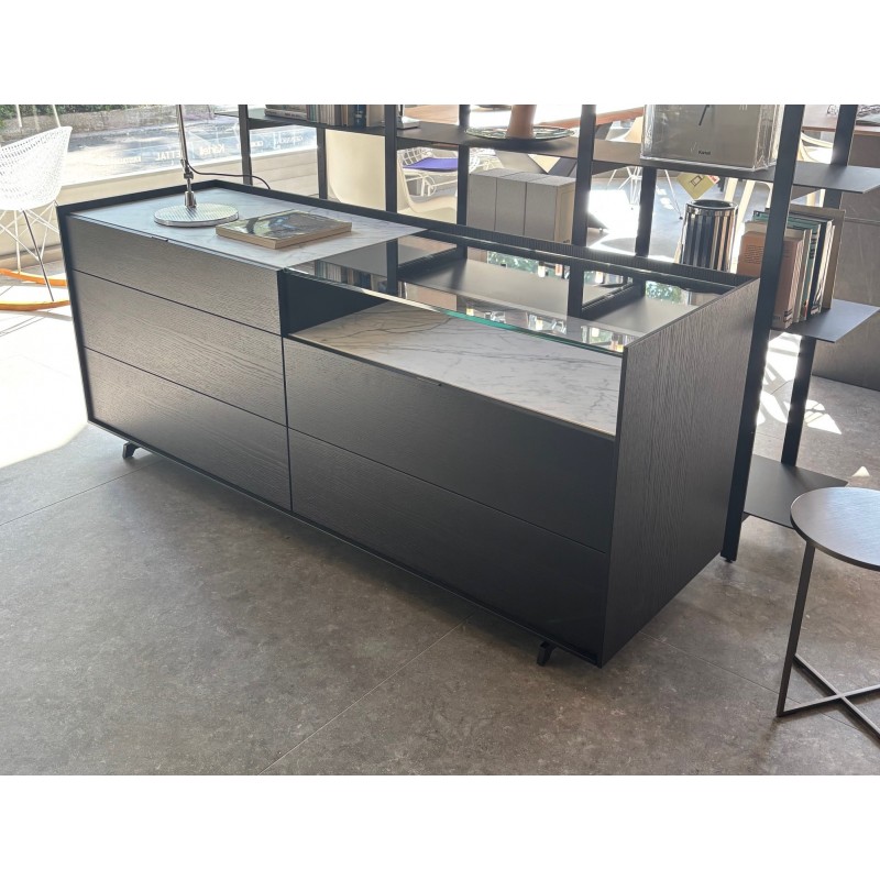 The Cabaret dresser by Sangiacomo is a modern storage unit for the bedroom area that features a top “recessed” into the structure with a tray effect, as the name suggests. In this outlet price version for exhibition renewal, Cabaret is offered in the following configuration: