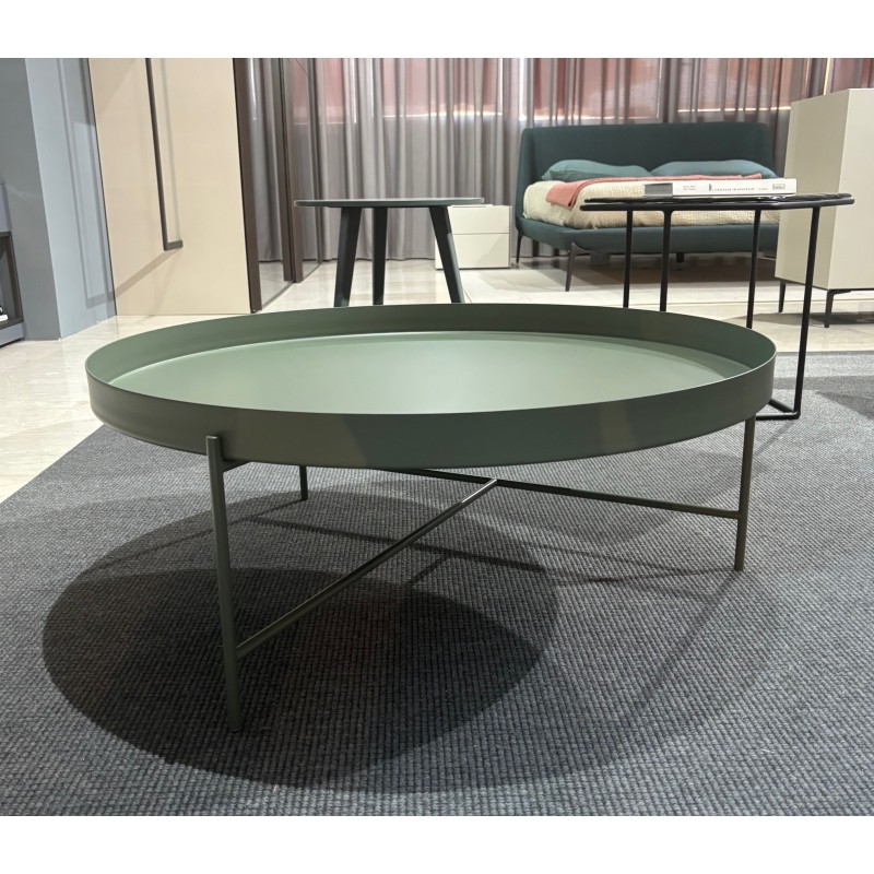 Globe by Novamobili is the metal coffee table with circular top and T-shaped frame. Offered at outlet price for expo renewal in the following configuration: