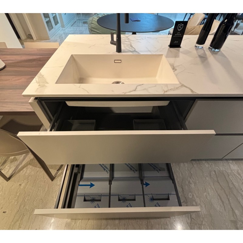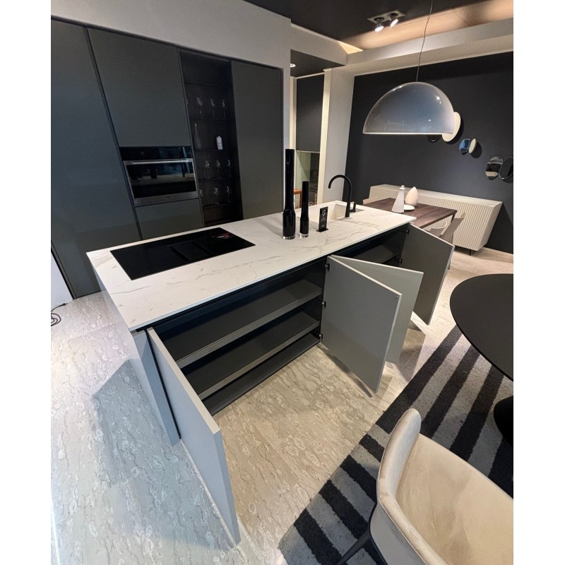 Forma 2000's laminate kitchen with island in outlet is available now for immediate delivery and viewing at our Sassoferrato showroom. Contact us to find out the price of transportation and assembly.
