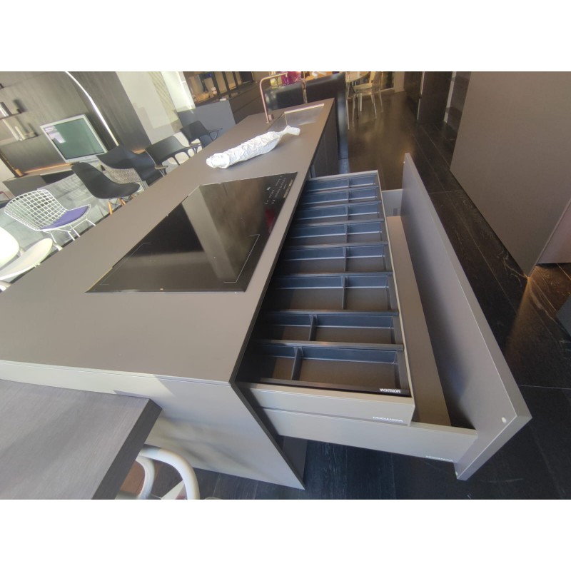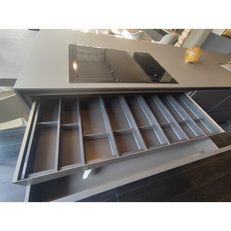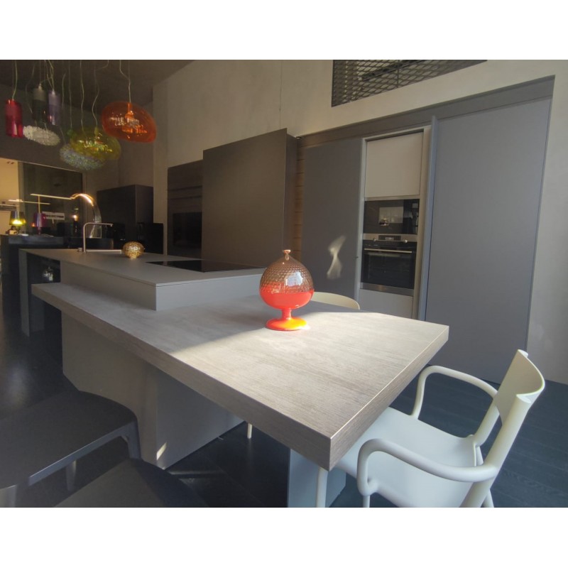 Modulnova's MH6 Super Matt kitchen with living area in outlet is available now for immediate delivery and viewing at our Ancona showroom. Contact us to find out the price of transportation and assembly.
