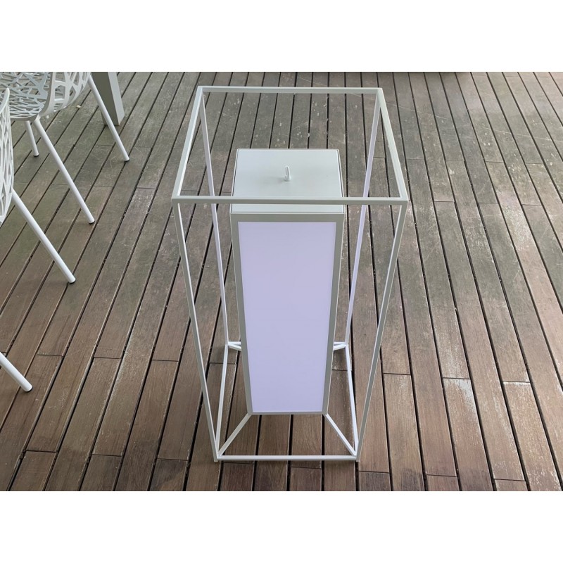 La lanterna CleoSoft Alu h120 è un accessorio luminoso per l'esterno, proposto in questa versione a prezzo outlet per rinnovo expo, nella versione in alluminio bianco con luce dimmerabile LED 7W 2800K