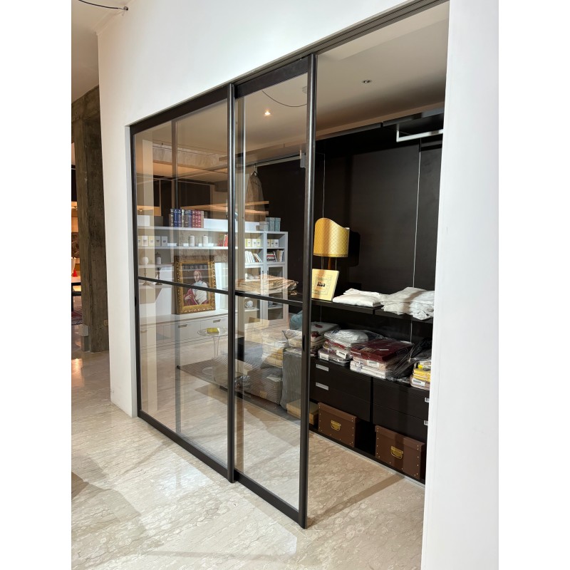 Rimadesio's Siparium two-door sliding door is currently available and viewable in our Sassoferrato showroom. Contact our interior designers to find out the price of transportation and assembly.