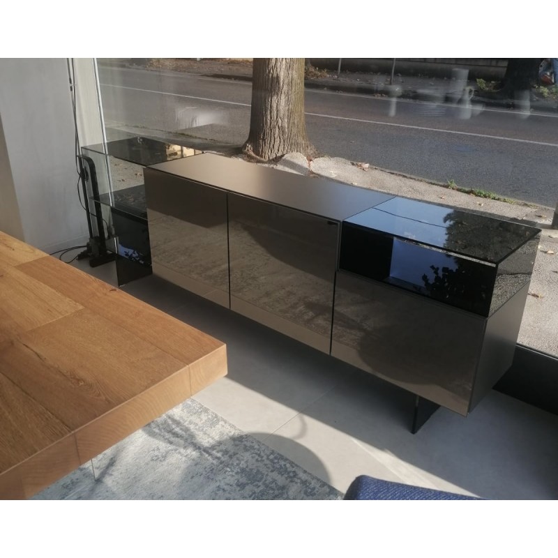 La madia 36e8 Glass di Lago fa parte del sistema modulare 36e8 brevettato dall'azienda veneta, che consente di creare un'infinita gamma di mobili di contenimenti personalizzabili nelle dimensioni, forme e colori.