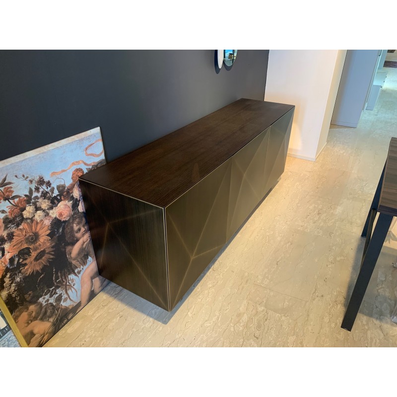 Cubric is the sculptural sideboard by Riflessi characterized by spectacular three-dimensional doors. Push-pull doors opening. In this configuration at outlet price for exhibition renewal, Cubric is proposed in the following configuration: