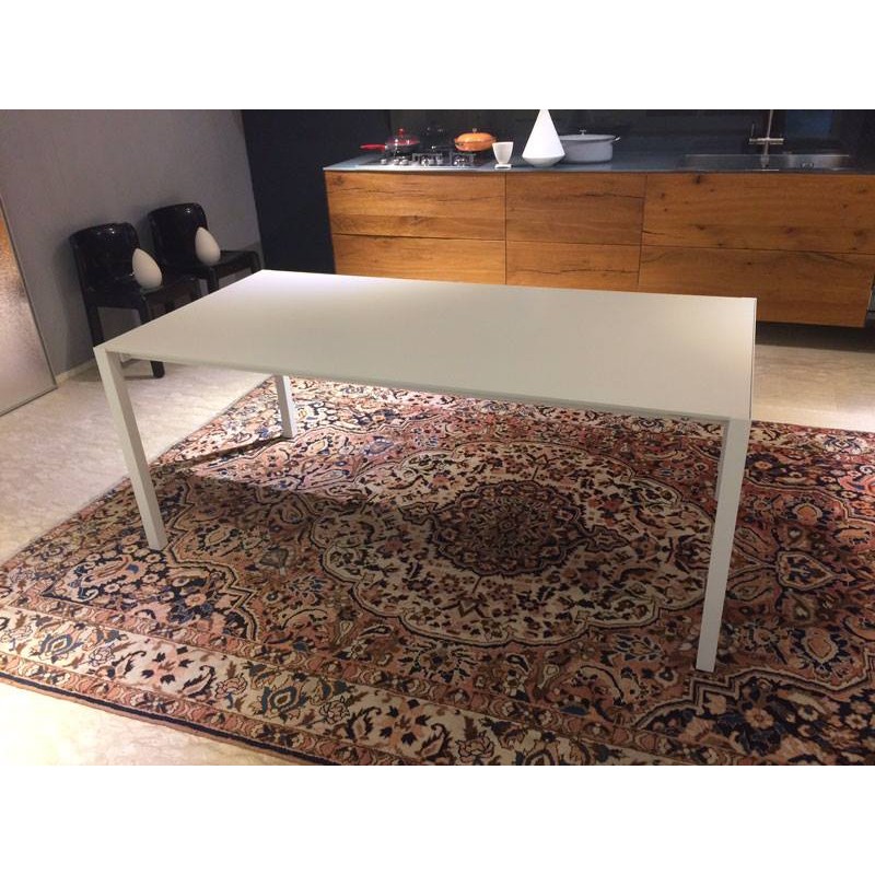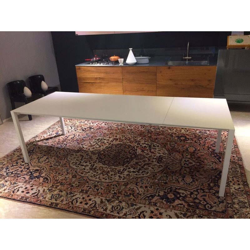 Extension di MDF Italia è un tavolo minimale con struttura e gambe in alluminio verniciato opaco goffrato disponibile da riordino con la seguente configurazione: