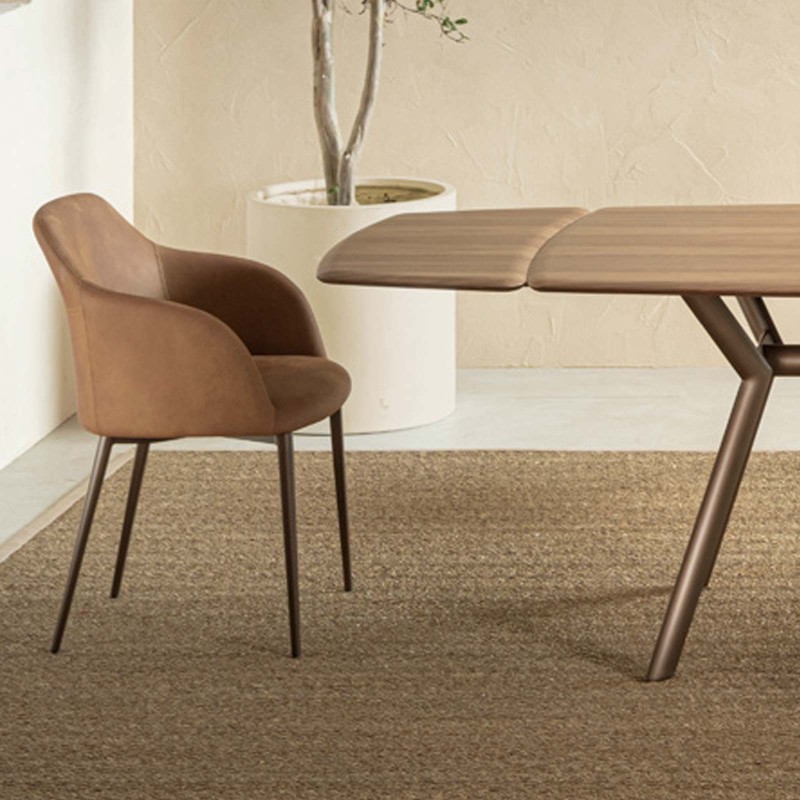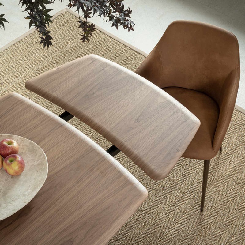 Paradise is the new fixed and extendable table launched in 2024 by Riflessi defined by a modern and vaguely retro aesthetic, with a wooden top with rounded corners and oblique aluminum legs. Extremely customizable thanks to the possibility of configuring it with a wide variety of finishes, Paradise is available in three sizes: L 165/245 cm - 180/260 cm (depth 90 cm) and 200/280 cm (depth 100 cm).