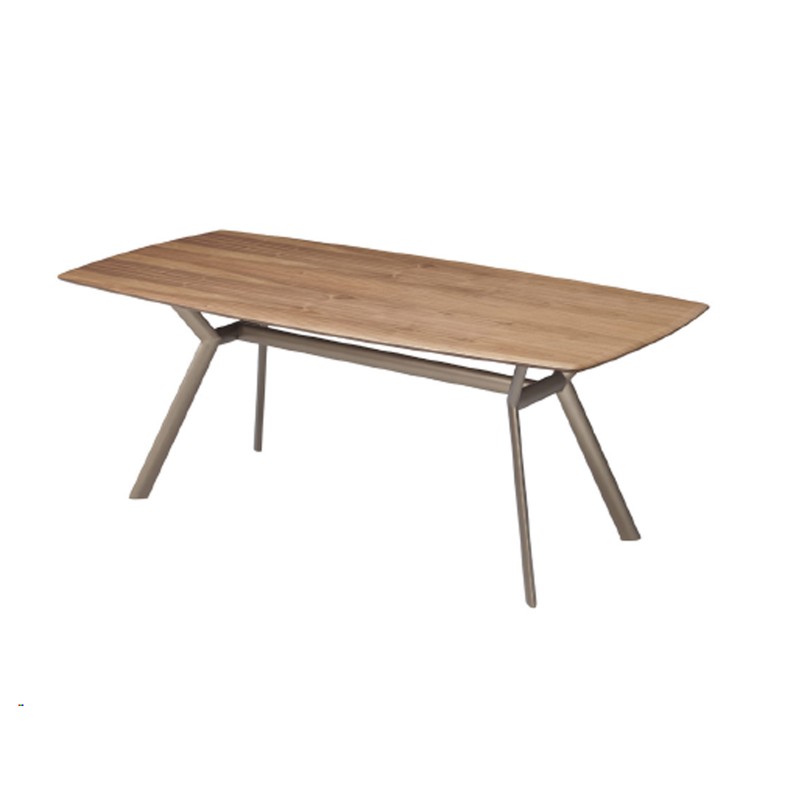Paradise is the new 2024 table by Riflessi defined by a modern and vaguely retro aesthetic, with a wooden top with soapboard edges and oblique aluminum legs. Extremely customizable thanks to the possibility of configuring it with a wide variety of finishes, Paradise in the version with a fixed top can be customized to the centimeter in sizes between 90 and 300 cm.