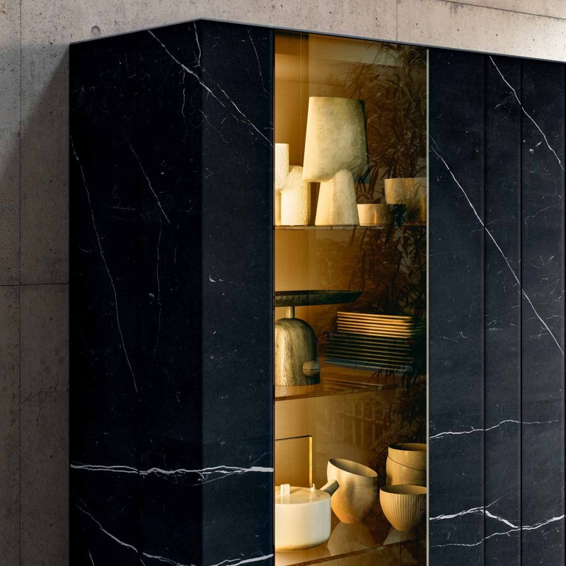 Get inspired by the range of XGlass finishes with a marble, metal or wood effect to make your N.O.W suspended sideboard by Lago unique.