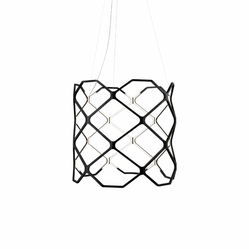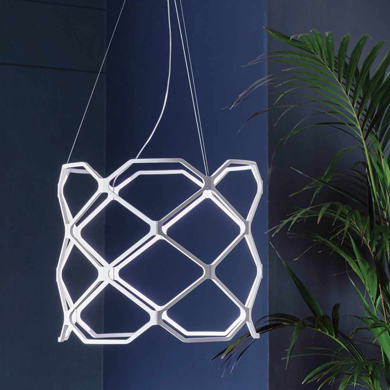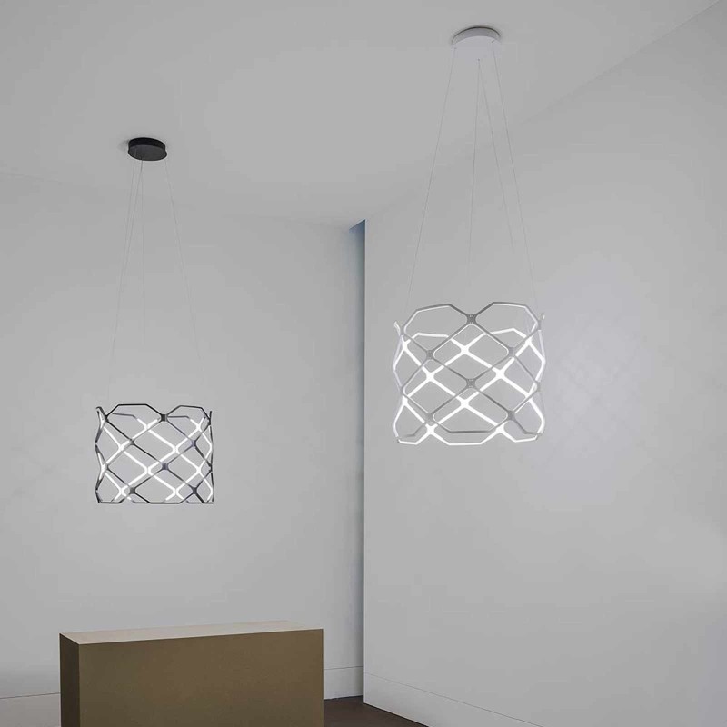 Titia is Nemo's suspension lamp, the result of important research into luminous engineering and aesthetic "subtraction". The peculiarity of Titia is in fact its texture: a diamond pattern of voids which itself becomes a source of light. The contour is thus the light source, an exercise in style in the dematerialisation and miniaturization of light sources. The recycled polymer modules are injection molded and equipped with joints that allow for practical assembly. Titia by Nemo is a sober lamp, with a discreet and contemporary charm. Dimmable LED.