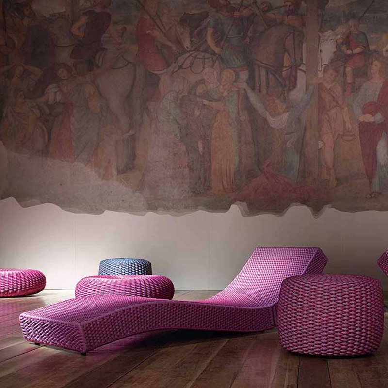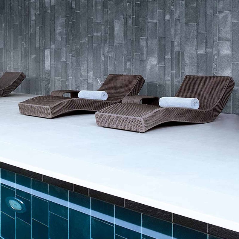 Wave is Paola Lenti's sunbed characterized by a curved silhouette that resembles a wave, as the name suggests. Wave is a chaise longue with a backrest adjustable in two positions in addition to the rest position. The structure is in AISI 316 steel, the tips are in plastic material. The upholstery is fixed and hand-woven with Rope cord. Wave can be completed with the mattress.