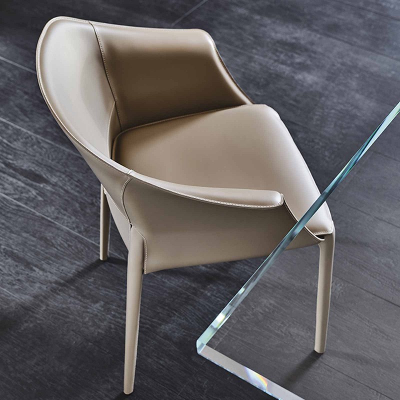 The Zuleika chair by Cattelan Italia evokes a classic style, perfect for completing a formal dining room with elegance. The lines are sinuous, accentuated by the stitching on the profiles in the same color as the leather upholstery. The legs of Zuleika come out of the back giving a slender look.