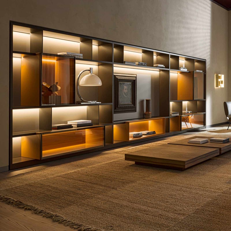 505 est le programme modulaire le plus vendu de Molteni&C en constante évolution et en ligne avec les besoins de la vie à la maison. En 2021, 505 présente une évolution, proposant des solutions alliant esthétique et multifonctionnalité. 505 est une bibliothèque murale de jour qui s'ouvre à de nouveaux usages et à des déclinaisons variées : du coin bar et meuble TV à l'élément de présentation.