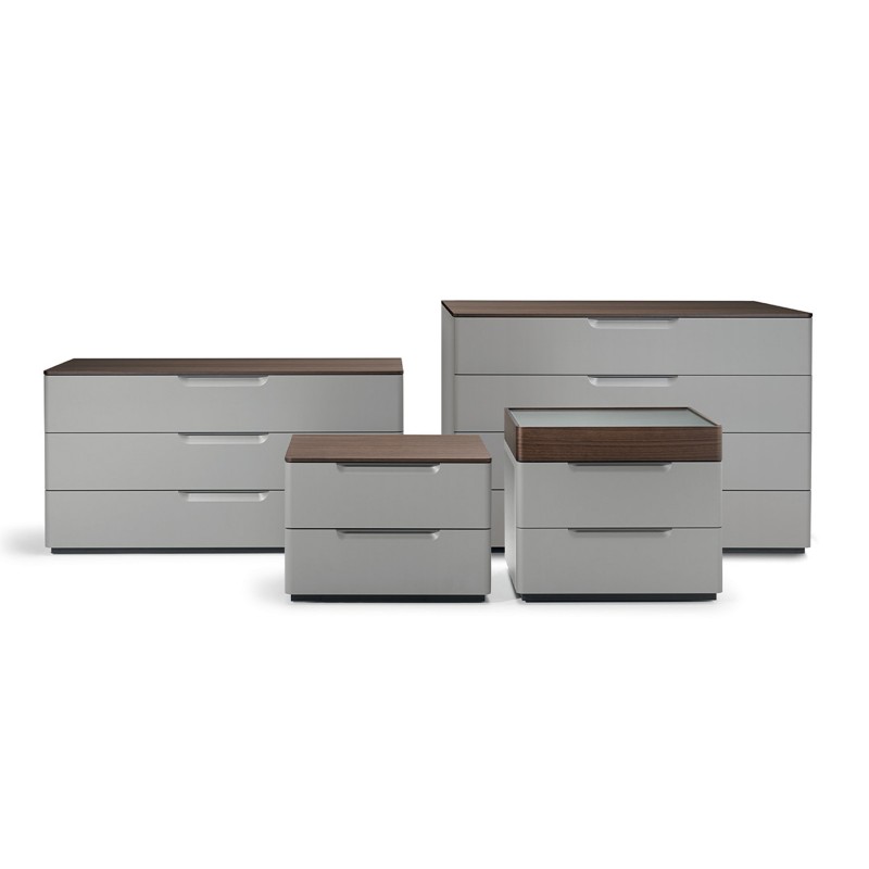 7070 est un système de stockage de nuit de Molteni & C conçu par Rodolfo Dordoni pour les besoins de la vie contemporaine. Deux tables de chevet et deux commodes différentes déterminent la collection 7070, dans laquelle le design linéaire adouci par les angles arrondis est souligné par des matériaux nobles, tels que les laques, les poignées en étain et le dessus en eucalyptus. La table de chevet est disponible avec un plateau ou avec un plateau amovible équipé d'un plateau en verre transparent nervuré, tandis que la commode est disponible avec 3 ou 4 tiroirs.