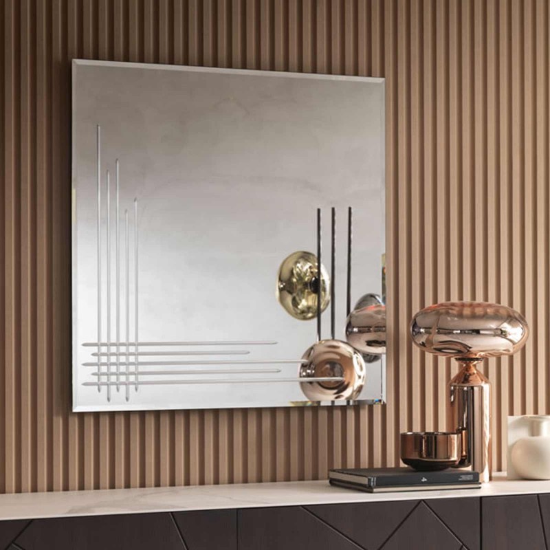 Ce miroir biseauté avec gravure géométrique. Ce miroir s’intégrera parfaitement dans votre salle de bain pour un look contemporain.