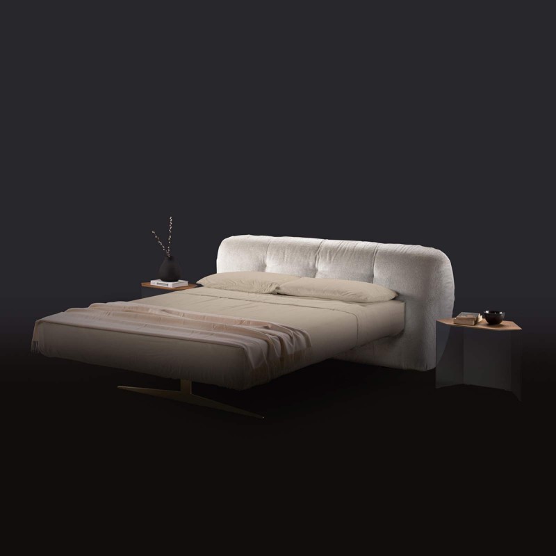 La collection de lits Lago s'agrandit avec Bounty, conçu par Daniele Lago Autoportant, à poser contre le mur ou à positionner au centre de la pièce, Bounty se caractérise par une tête de lit moelleuse d'une épaisseur de 32 cm, presque comme un méga coussin, idéal pour ceux qui aiment s'asseoir et lire ou regarder la télévision. La base du lit est celle en métal de la collection Steel, disponible en deux finitions Peltro ou Titanio. Bounty peut être amélioré avec un éclairage sous le sommier.