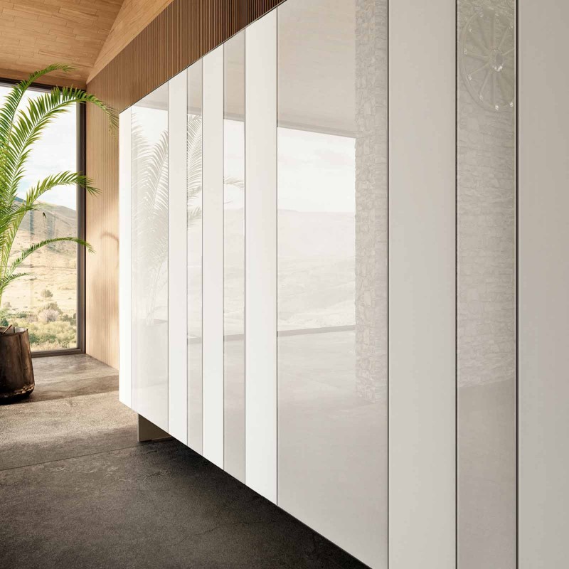 Un buffet rythmé par le rythme esthétique des bandes verticales en verre XGlass. Voici N.O.W., la nouvelle collection de conteneurs suspendus et autoportants de Lago présentée à la Milan Design Week 2021. Scénographique et contenant à la fois, le N.O.W. a une ouverture brevetée et un éclairage interne inclus. Le motif décoratif se trouve également sur les parties latérales du buffet.