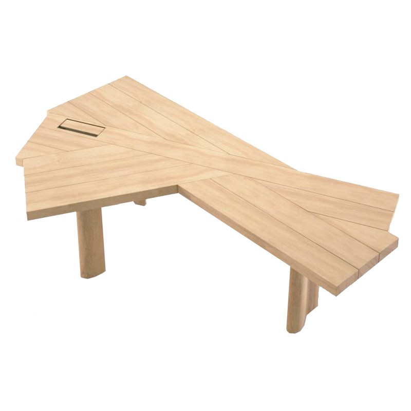 Ventaglio est le bureau signé par Charlotte Perriand, réédité par Cassina. Définitivement, un meuble qui diffère du design habituel, exprimant sa nature multitâche. Avec sa forme irrégulière et sa prédisposition à l'électrification, Ventaglio est parfait comme poste de travail. Disponible en fini naturel et teinté noir, avec porte ou passe-câbles. Ventaglio fait partie de la ligne Cassina Pro dédiée au monde du contract, en particulier l'hôtellerie et le lieu de travail.