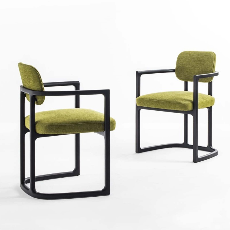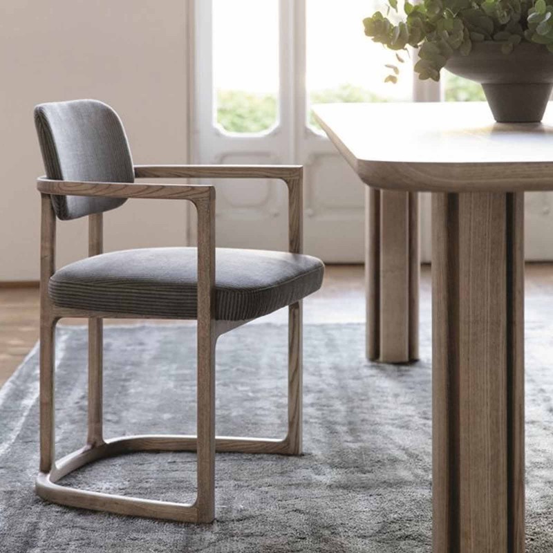 Serena est une chaise avec accoudoirs de Porada à l'esprit contemporain. Léger et solide à la fois, Serena est un siège aux caractéristiques décisives en frêne massif, en alternance avec le dossier et l'assise recouverts de tissus de la gamme Porada.