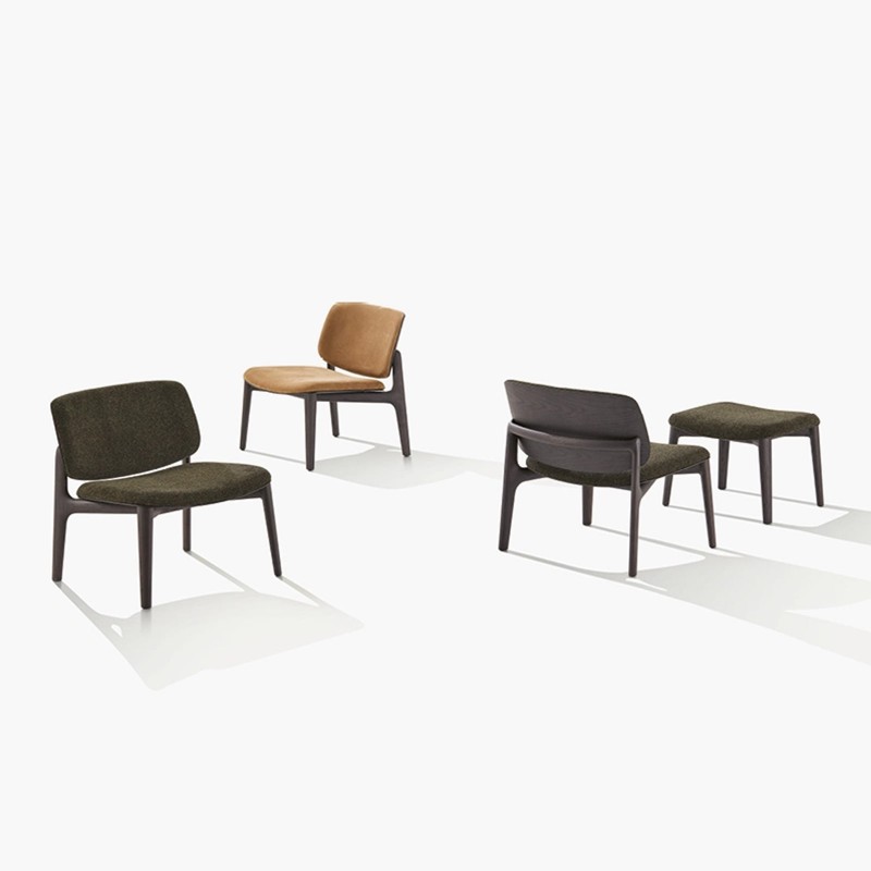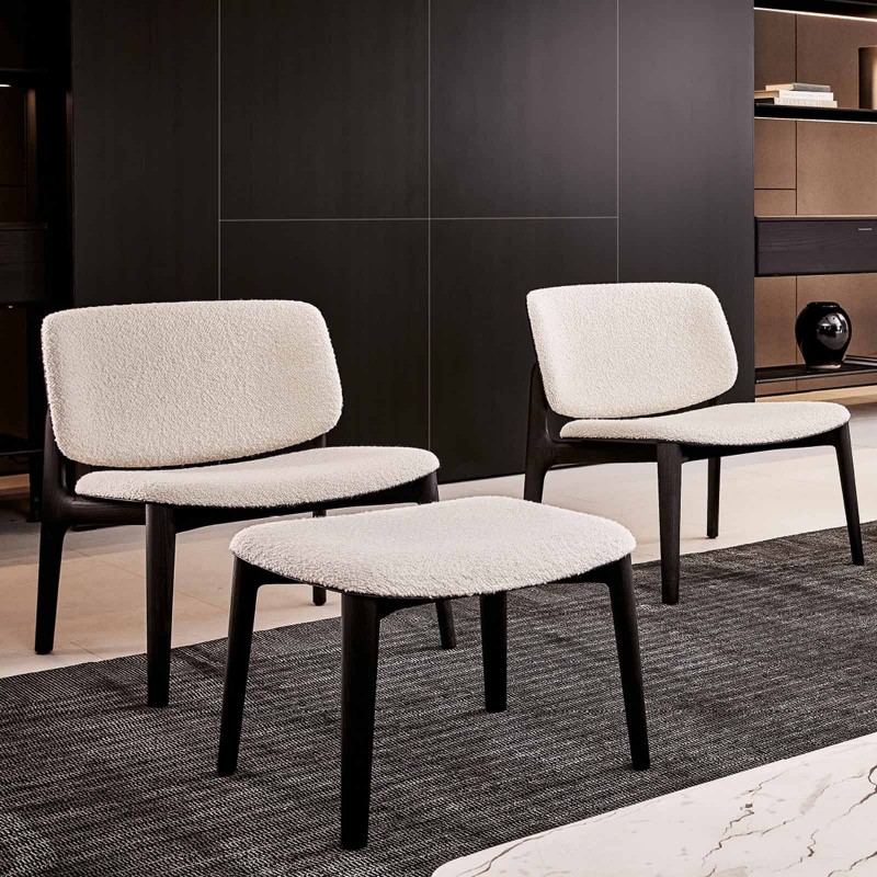Curve est un siège parfait pour les environnements résidentiels ainsi que pour ceux destinés à la communauté, tels que les salons, les halls d'entrée, les bureaux, les halls d'hôtel. Le fauteuil peut être complétée par le pouf L 56,5 x P 50 x H 41 cm.