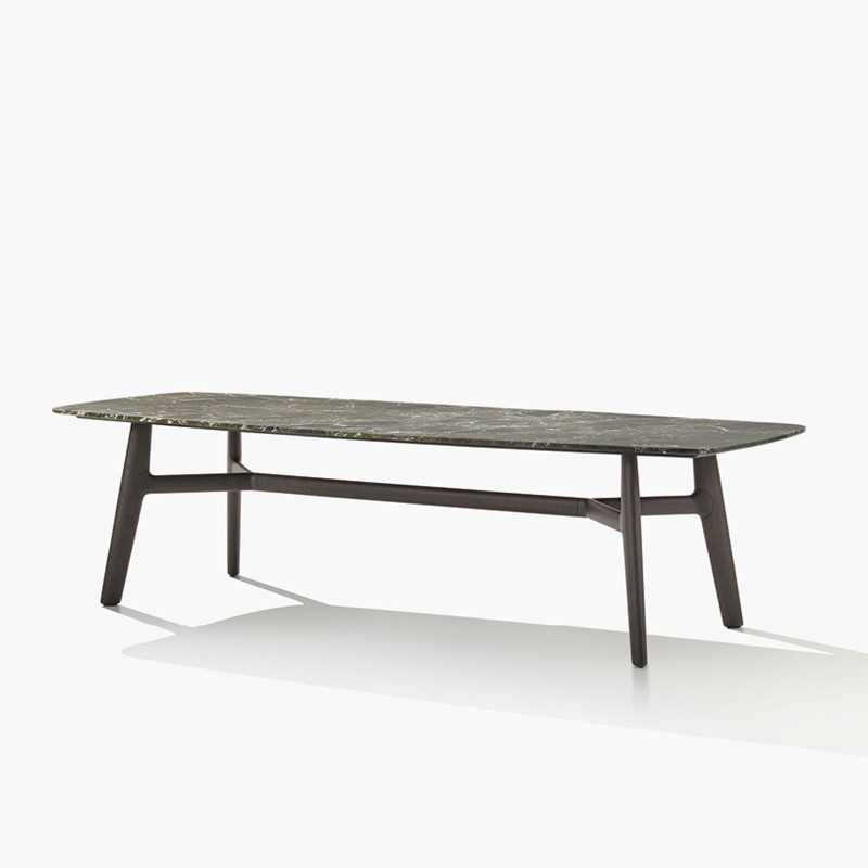 La table Curve est une nouveauté Poliform présentée au Salone del Mobile 2022, conçue par Emmanuel Gallina. Un projet contemporain, avec une ligne essentielle et solide, Curve s'ouvre sur une large gamme de finitions en bois ou en marbre avec des traverses recouvertes de cuir ou toujours en bois. Disponible en 3 tailles : L 205, L 245, L 285 cm.