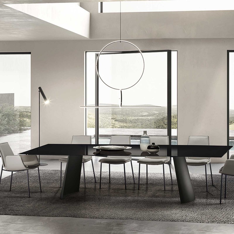 Dorian est la table Eforma avec une base en métal et un plateau en verre trempé rectangulaire ou façonné de 12 mm d'épaisseur en noir brillant. Les plateaux 240x120, 300x120 et 320x130 ont une épaisseur de 15 mm. Dorian se caractérise par une base à la fois légère et sculpturale. Une table parfaite pour meubler la salle à manger ou les bureaux de direction.