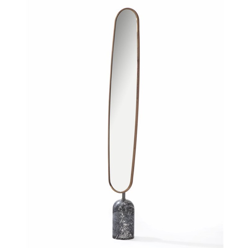 Ekero est le miroir Porada qui complète la collection d'accessoires d'ameublement, tels que Ekero Rack, où le leitmotiv est la base sculpturale: un cylindre en marbre disponible en deux finitions, marbre blanc de Carrare et marbre gris Carnico, qui soutient le miroir avec cadre en solide noyer canaletta.