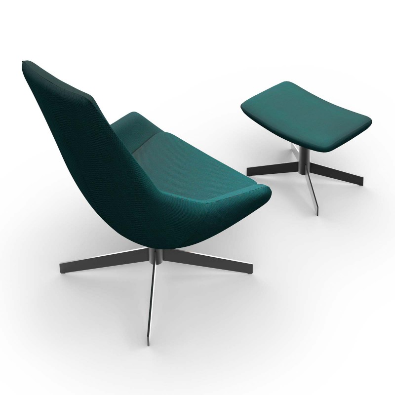 Exord 315 est le fauteuil Cassina Pro dessiné par le designer Jeffrey Bernett, à la première expérience de la marque italienne. Synthèse d'ergonomie, de décontraction et de propreté des formes, c'est un siège qui fait un clin d'œil à la démarche upcycling et green : ses composants peuvent être séparés en fin de cycle de vie. Exord 315 est complété par un pouf toujours avec une base à quatre branches, qui peut être combiné avec le rembourrage du fauteuil, et avec un coussin de dossier. Parfait pour les applications résidentielles et contractuelles.