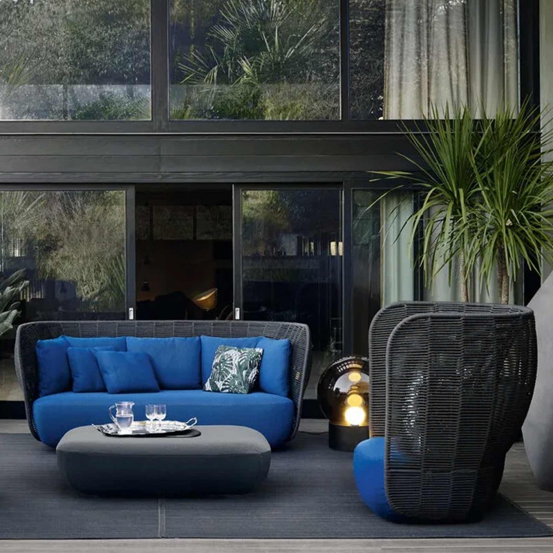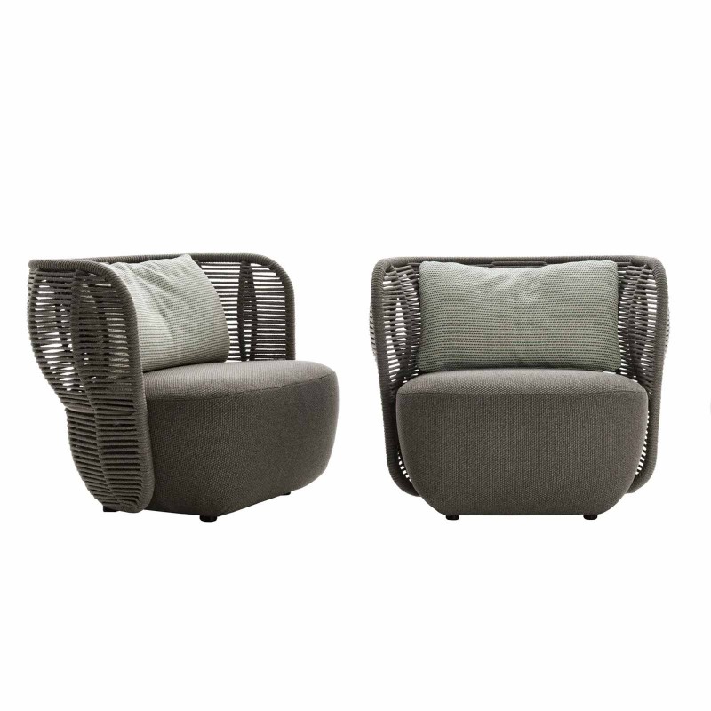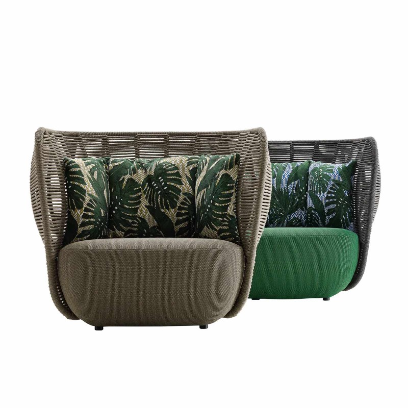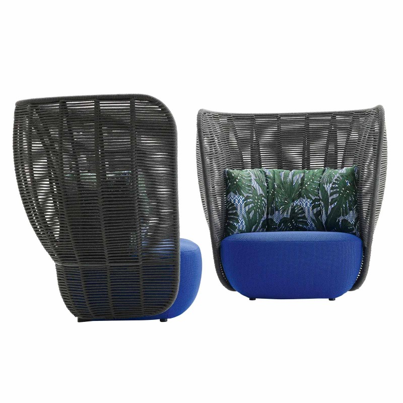 Bay est la ligne de meubles d'extérieur rembourrés de B&B Italia Outdoor. Avec un aspect sculptural et un entrelacement caractéristique, ils se distinguent par leur élégance et leur confort. Dans cette version, nous présentons le fauteuil à dossier bas ou haut.