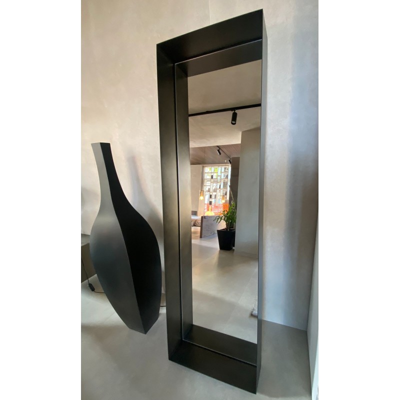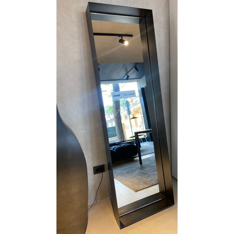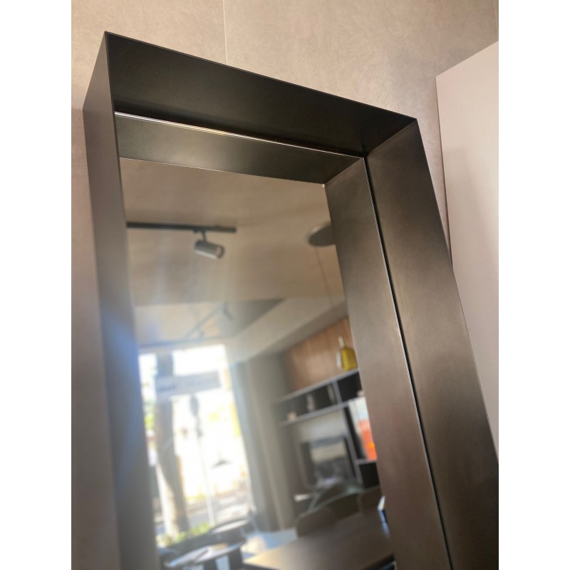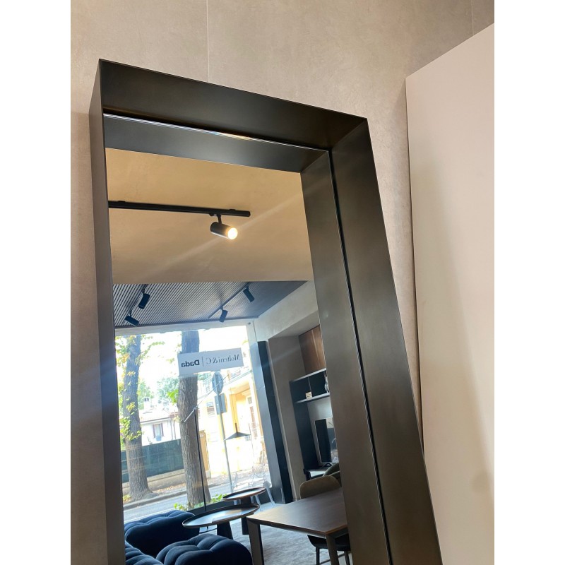 Le miroir Frame de De Castelli est enfermé dans un cadre métallique profond. Il se fixe au mur en position inclinée. Un accessoire d'ameublement à fort impact que nous proposons à prix discount pour la rénovation d'exposition avec la configuration suivante: