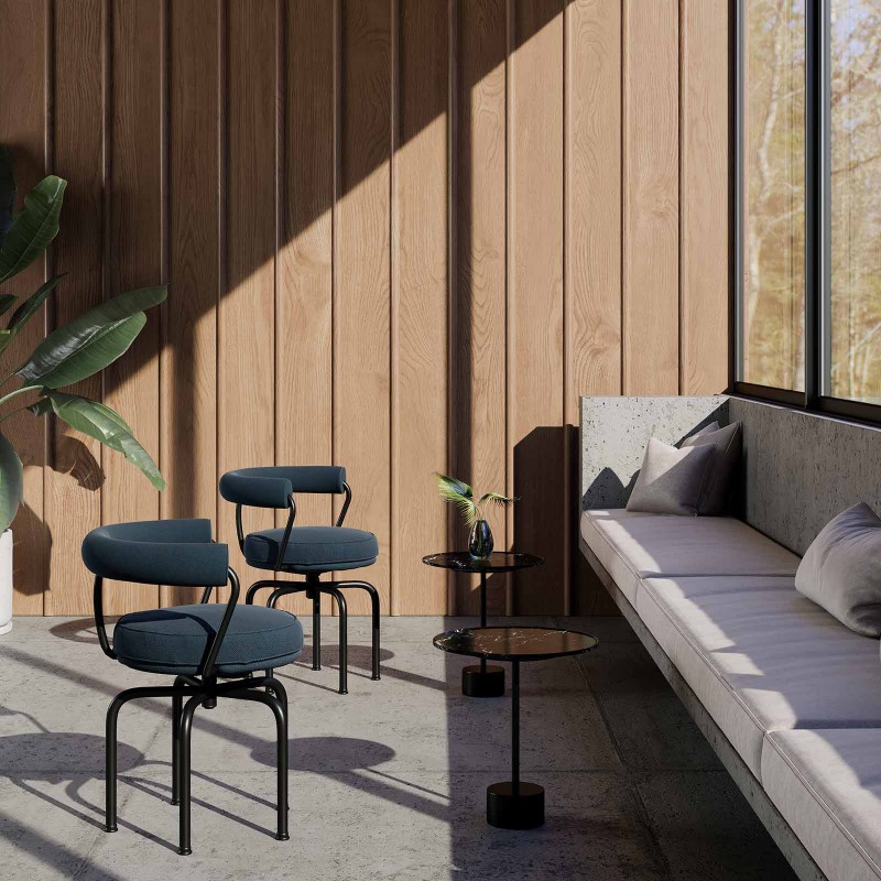 LC7 est le petit fauteuil dessiné par Charlotte Perriand en 1927 et réédité par Cassina pour la collection I Maestri. Compte tenu de sa polyvalence et de son iconicité, le célèbre fauteuil pivotant conçu pour l'appartement parisien du designer fait également partie de la Collection Cassina Pro, dédiée au monde du contract. LC7 est proposé avec 5 pieds et est en fait parfait pour les restaurants, les bureaux, les halls. Un morceau de l'histoire du design international à inclure dans les projets d'espaces communautaires.