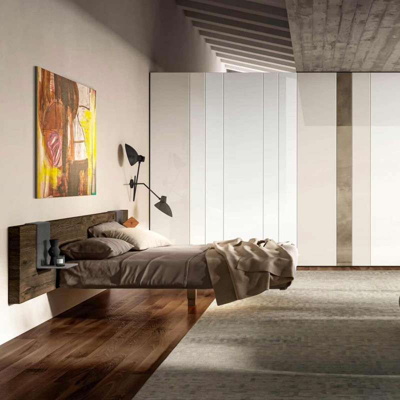 Louange à la légèreté. Le lit Fluttua de Lago est le premier lit suspendu qui défie la force de gravité, donnant la sensation de flotter. Fluttua est soutenu uniquement par un support central réglable en hauteur qui soutient le cadre, fixé au mur par un système de fixation étudié : le sol stratifié HPL disparaît de la vue. En plus de l'impact scénographique, Fluttua facilite au maximum le nettoyage et l'hygiène grâce à l'absence d'espace à l'extérieur du matelas et aucun autre obstacle.