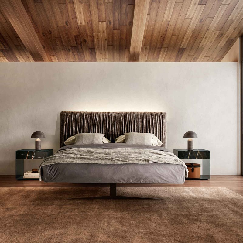 Le lit Steel Replis de Lago est l'une des nouveautés lancées à l'occasion du Supersalone 2021, à la Milan Design Week. Un lit avec une tête de lit rembourrée en tissu ou en cuir, rehaussée par un effet tridimensionnel sophistiqué obtenu avec une série de plis irréguliers. La base, comme dans l'original Steel, est en acier, ce qui affine et donne à la fois résistance et légèreté aux meubles pour la détente. Inspirez-vous de la gamme de revêtements Lago pour personnaliser votre lit Steel Replis.