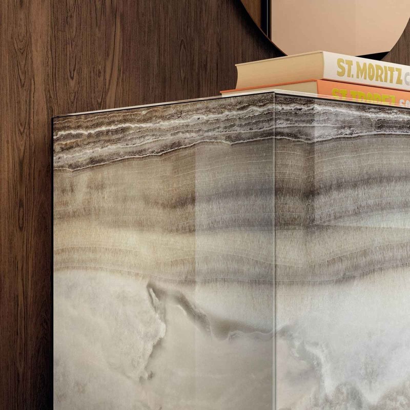 Le buffet Materia de Lago continue de donner de la beauté aux surfaces, en les rendant protagonistes absolus. La collection de buffets de Lago se caractérise en effet par la pureté et la linéarité des volumes conçus en verre de 4 mm, avec des performances de résistance notables. Le résultat est un meuble monolithique où la particularité est donnée par la continuité du grain dans le cas des finitions XGlass Marmo brillantes ou mates ou des motifs.