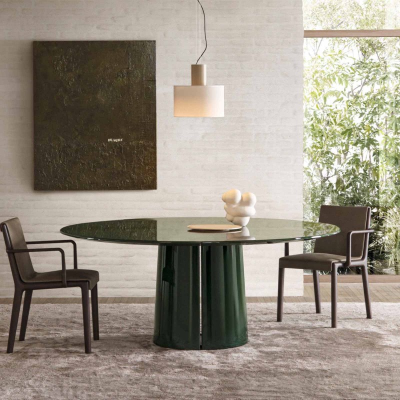 Présentée au Salone del Mobile.Milano 2023, la table Mateo est un projet de Vincent Van Duysen pour Molteni&C. C'est une table disponible à la fois ronde et ovale, caractérisée par une base centrale cylindrique et conique. La particularité du socle en forme de contreplaqué courbé est donnée par une fine rainure ouverte au centre qui divise parfaitement la base en deux.