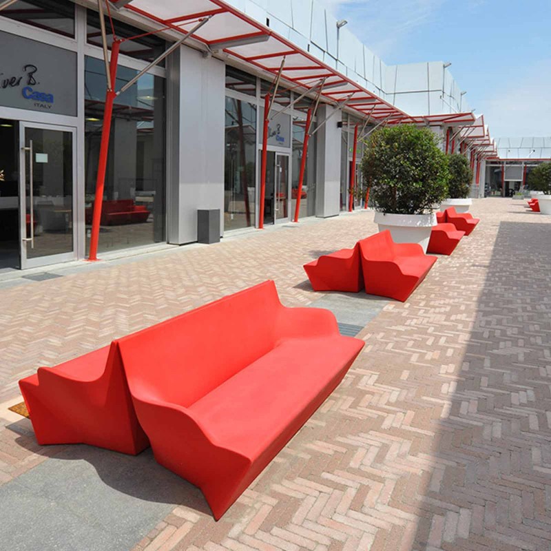 Le canapé deux places fait référence, comme le reste de la collection Kami, à l'origami traditionnel. Les lignes des bras de ce canapé d'extérieur ont une morphologie plus ergonomique pour créer des formes confortables qui s'adaptent au corps. Vous pouvez faire votre canapé plus confortable et plaisant grâce à l'oreiller conçu pour ce canapé et disponible en blanc, gris et anthracite, comme dans les images.