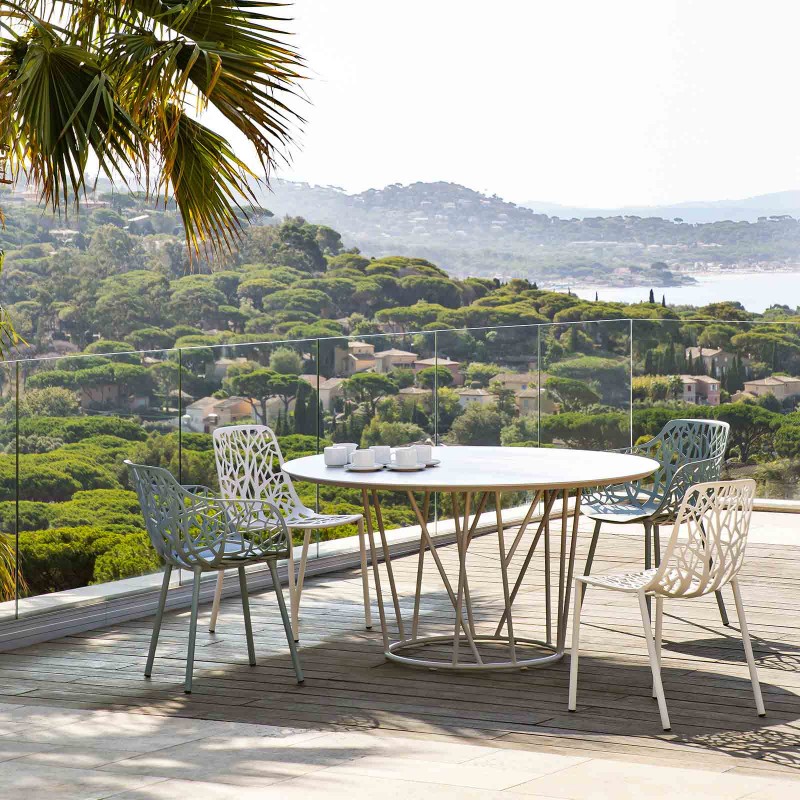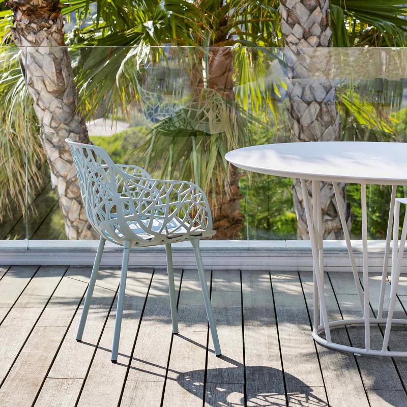Le table ronde Wild de Fast conçue par Robby Cantarutti & Partners fait partie d'une collection qui comprend des tables basses, des poufs. Wild évoque le monde de la savane et de la nature intacte, le synthétisant dans un design contemporain, où les branches deviennent des éléments graphiques qui donnent au mobilier une touche exotique chic, idéale pour les espaces extérieurs. Esthétique alliée à fonctionnalité: la série Wild de Fast est en aluminium peint qui garantit la résistance aux agents atmosphériques.
