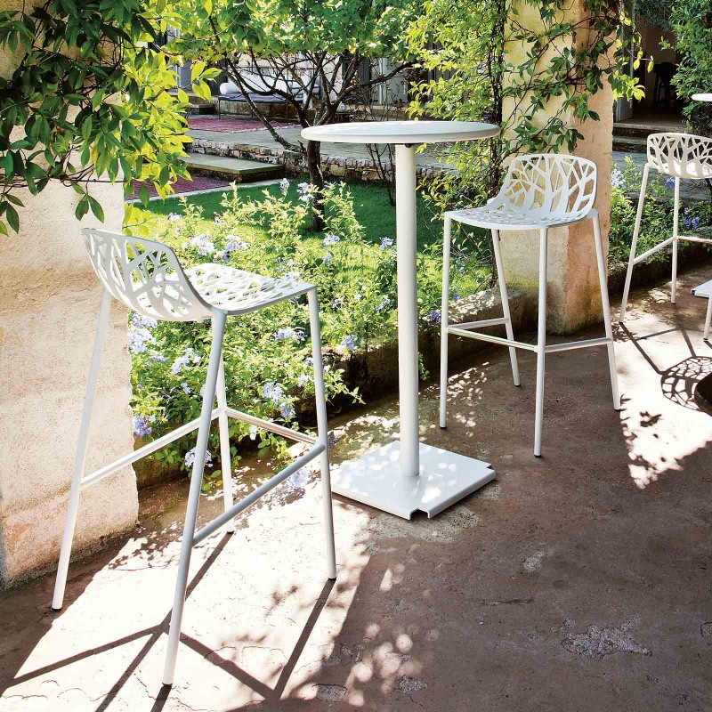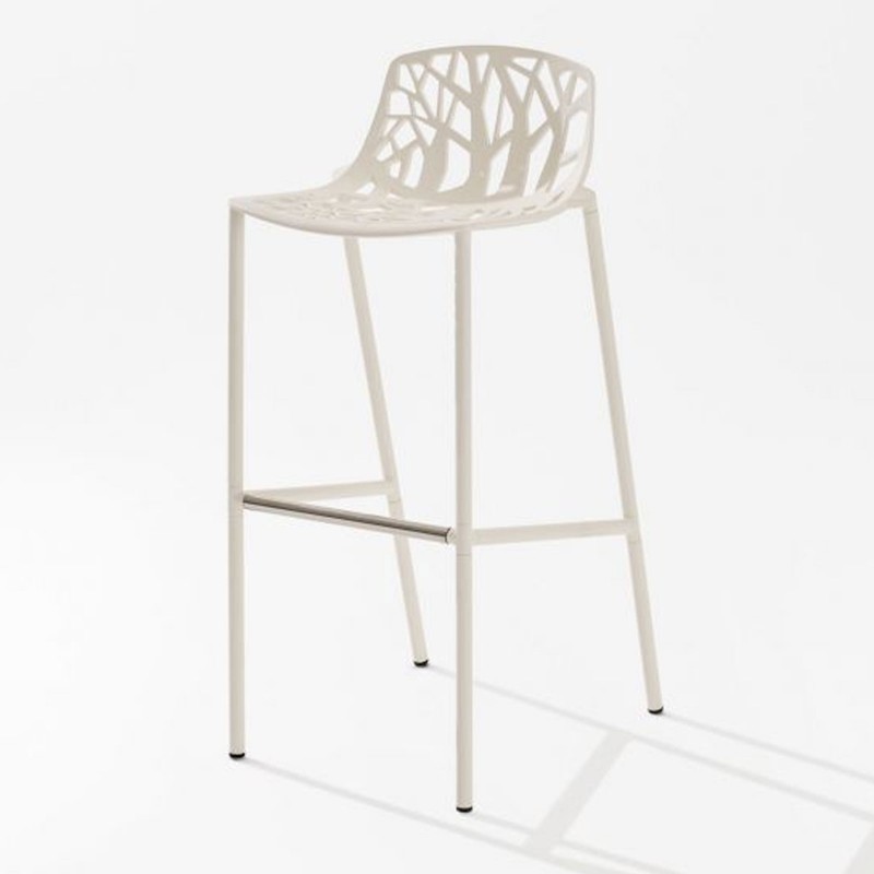La tabouret Forest de Fast fait partie de la collection homonyme créée en 2007 par Robby Cantarutti & Partners et est devenu un best-seller de la marque italienne de mobilier d'extérieur. Le fil conducteur de la ligne en aluminium peint avec repose-pied en acier inox poli est le motif décoratif intégral qui recouvre le mobilier et évoque la texture qu'ils créent ou les branches des arbres des forêts dans une touche contemporaine. La collection Forest de Fast comprend la chaise, la fauteuil lounge, le tabouret et le tabouret à haut dossier ainsi que les coussins assortis.