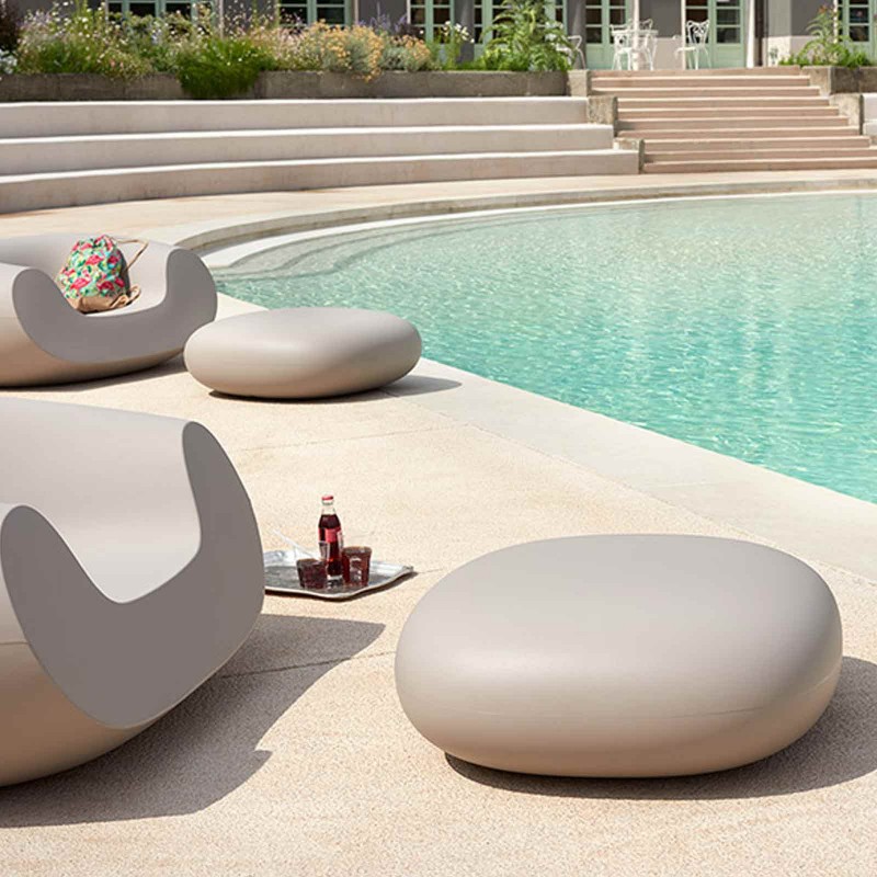 Une grande pierre blanche: Chubby Low par Slide, réalisée par le designer hollandais Marcel Wanders, est un accessoire qui s’associe avec le fauteuil Chubby et peut être utilisé comme pouf ou comme table basse design. C’est un meuble particulier qui, grâce à ses formes arrondies, apporte une touche d’originalité aux espaces dans lesquels elle est insérée, en donnant le sentiment de se relaxer sur un galet blanc suspendu dans l’espace extérieur.